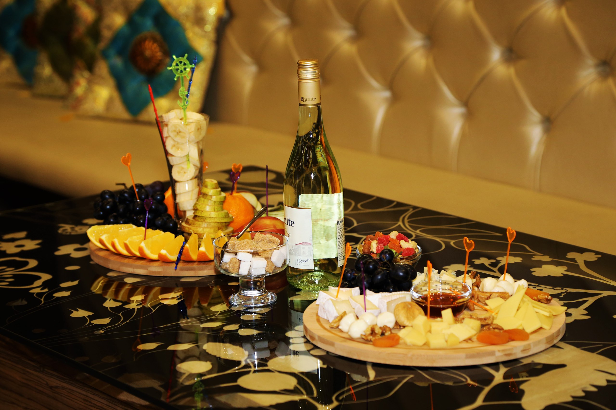 •Легкие и полезные закуски, свежие фрукты. Чай, вода без ограничений, а в конце праздника мы угостим вас низкокалорийными пирожными от кондитерской "Пралине"
